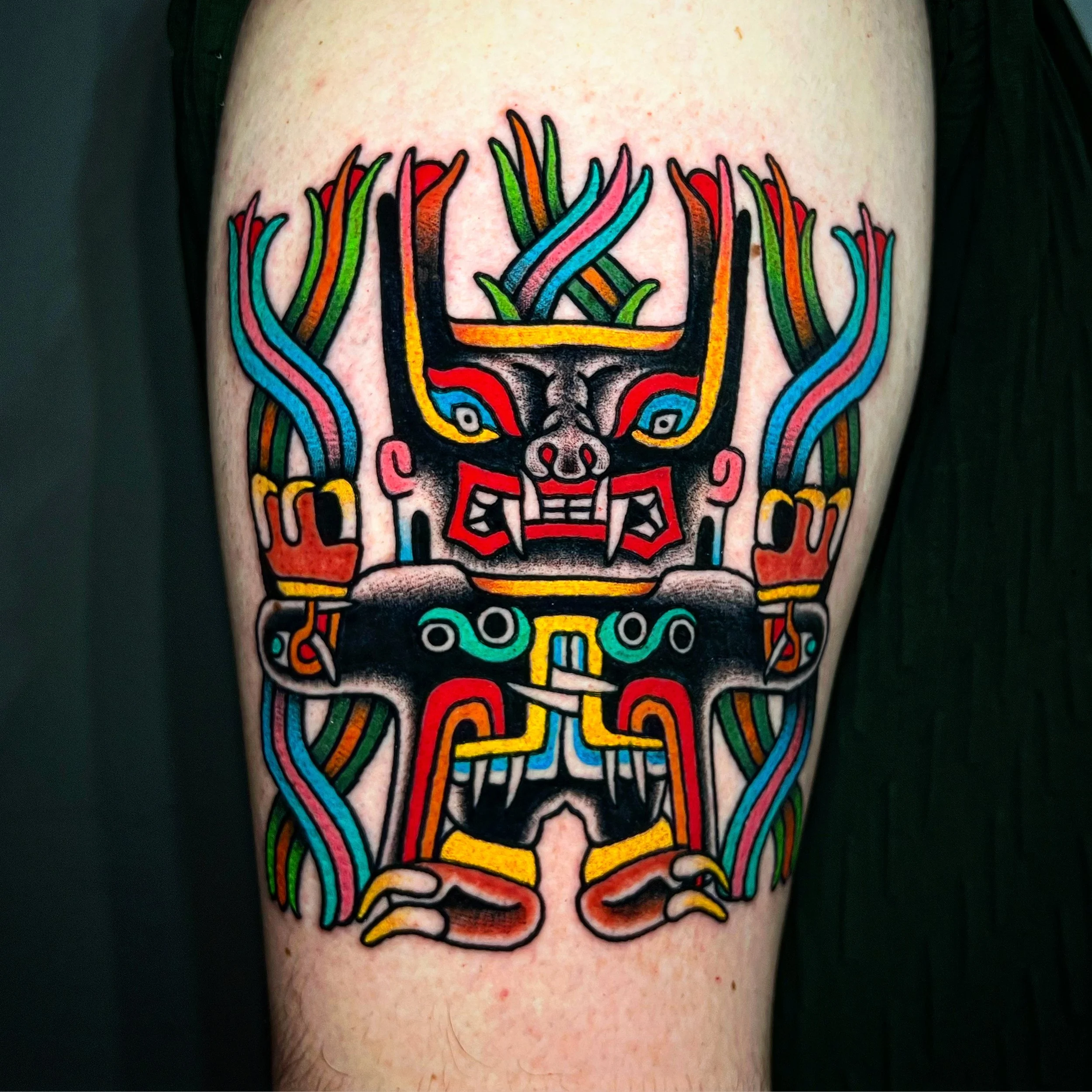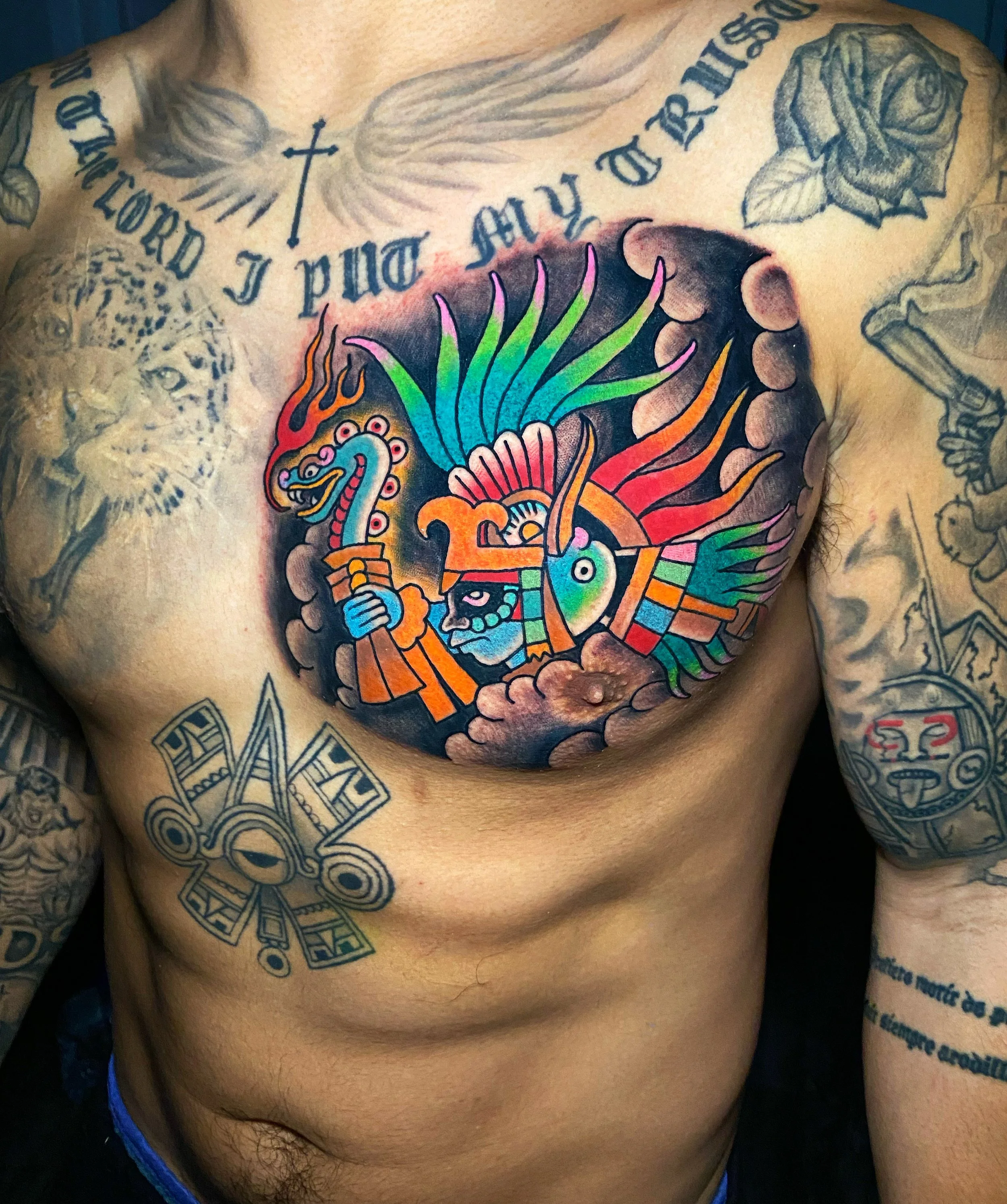 Chimu is a professional tattoo artist who specializes in traditional pre-hispanic designs. Bold lines and bright color define his unique style of tattooing. He travels internationally attending many conventions and events. If you are interested in getting tattooed or have any questions please send a message.